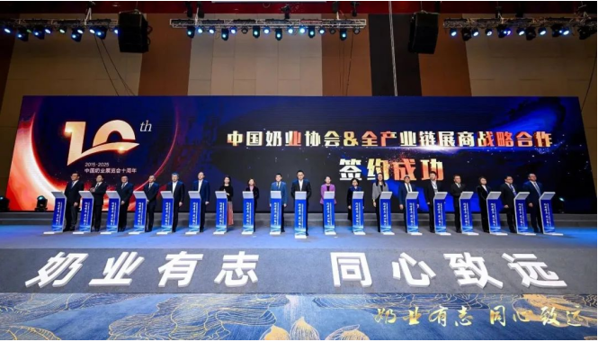為了進(jìn)一步凝聚行業(yè)力量,強(qiáng)化行業(yè)準(zhǔn)則,明確企業(yè)擔(dān)當(dāng),促進(jìn)廣泛交流與合作,共同塑造中國奶業(yè)健康、安全、可持續(xù)的行業(yè)形象,滿足人民日益增長的美好生活需求,展商代表與中國奶業(yè)協(xié)會代表共同登臺,正式發(fā)布《中國奶業(yè)展覽會展商宣言》。這一莊嚴(yán)時刻不僅彰顯了奶業(yè)界的強(qiáng)大凝聚力,更激勵著全行業(yè)同仁攜手并進(jìn),為實(shí)現(xiàn)奶業(yè)強(qiáng)國的宏偉目標(biāo)奮勇前行。大家紛紛表示,將以更加飽滿的熱情和務(wù)實(shí)的行動,切實(shí)履行宣言中的每一項(xiàng)承諾,共同書寫中國奶業(yè)更加輝煌燦爛的明天。