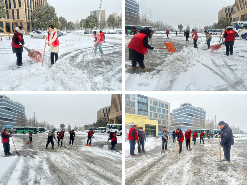 經(jīng)過兩個多小時的連續(xù)奮戰(zhàn),原本濕滑難行的道路煥然一新,辦公樓出入口、人行通道等關(guān)鍵點位全部暢通無阻,有效消除了安全隱患,為全體員工筑起一道堅實的“紅色安全屏障”。在集團黨委的號召下,各分子公司黨支部也分別組織開展除雪作業(yè),確保責(zé)任區(qū)域的安全。大家用實際行動詮釋了奉獻與擔(dān)當(dāng),讓鮮紅的黨旗在清雪一線高高飄揚,也為企業(yè)寒冬里的安全生產(chǎn)和有序運行提供了堅實保障。